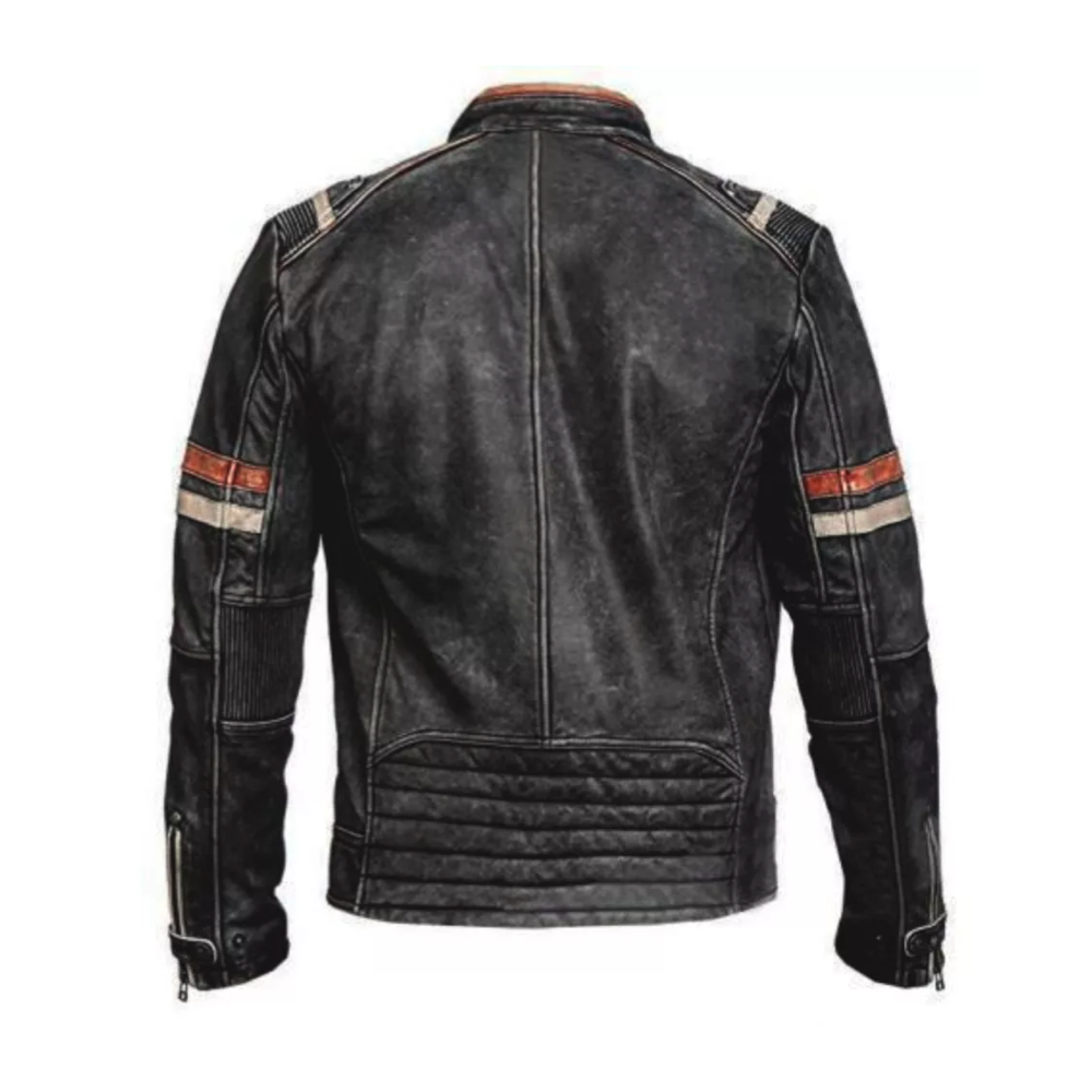 Men’s Biker Vintage Motorcycle Cafe Racer Retro Distressed Black Leather Jacket*