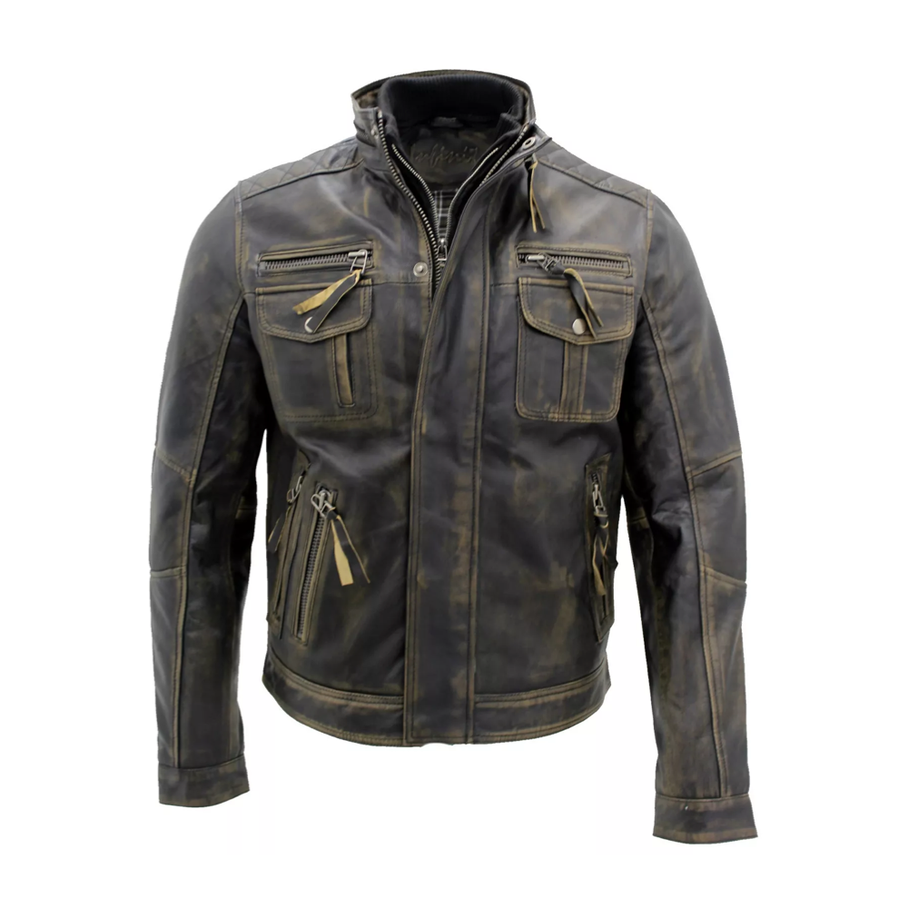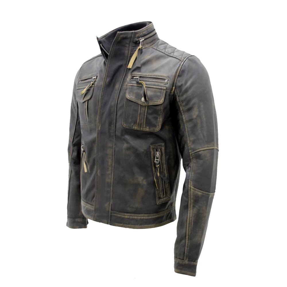 Vintage Distressed Motorcycle Retro Biker Mens Genuine Leather Jacket