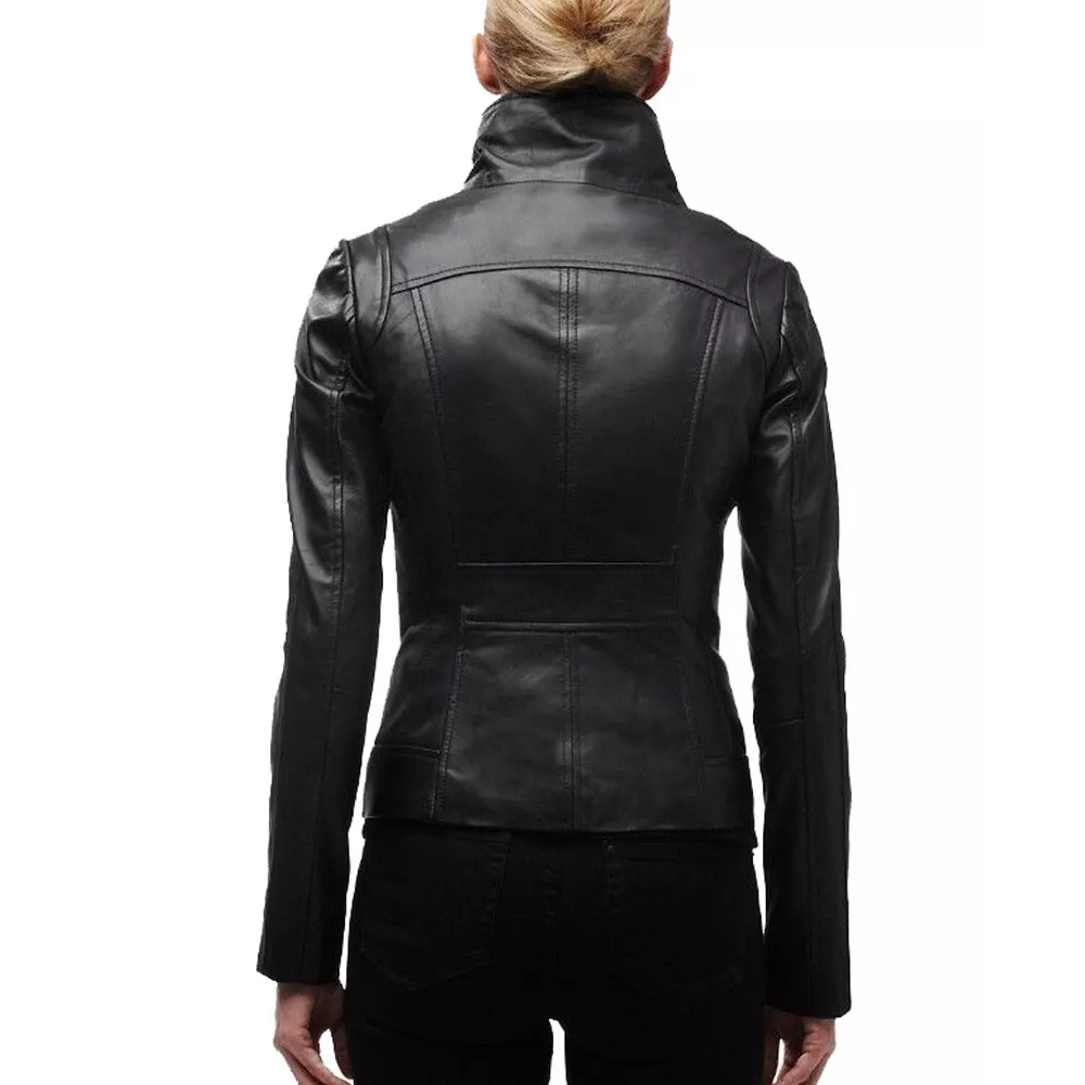 Women’s 100% New Genuine Lambskin Leather Jacket Biker Black Jacket *