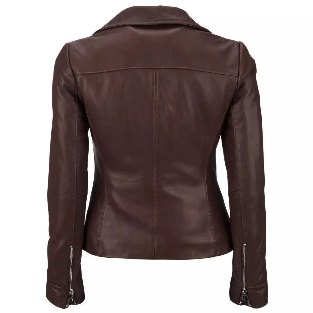 Women’s Genuine Brown Leather Jacket 100% Soft Lambskin Coat Motor Biker Outwear